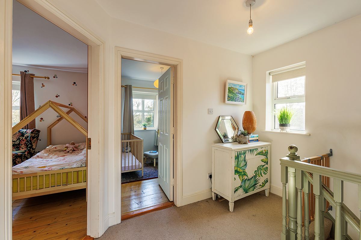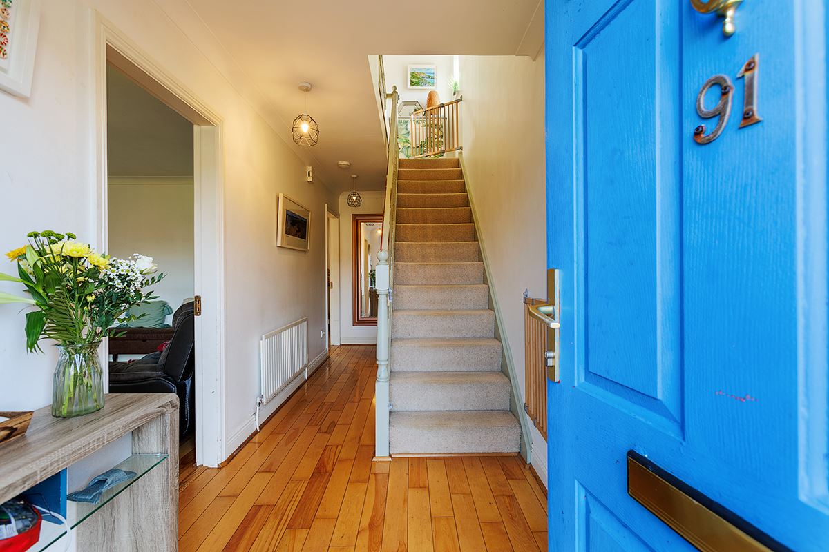This light-filled and spacious home comprises an inviting entrance hall, generous living room ideal for relaxing, and a large kitchen/dining area that flows seamlessly into the sunroom. Flooded with natural light from Velux windows and a high ceiling, the sunroom also features sliding doors opening directly onto the rear garden. The ground floor further benefits from a versatile bedroom, currently used as a gym, complete with a convenient en-suite. Upstairs, there are three well-proportioned bedrooms (including a master en-suite) and a main family bathroom.