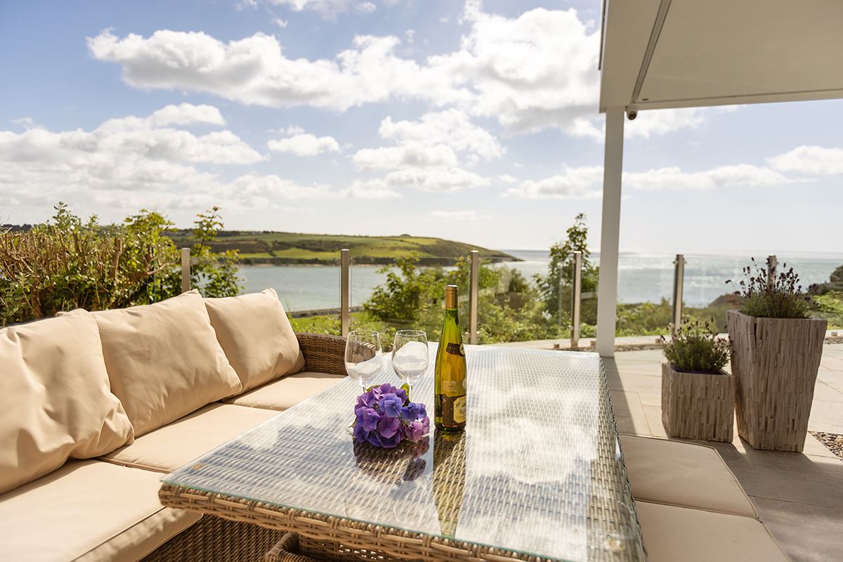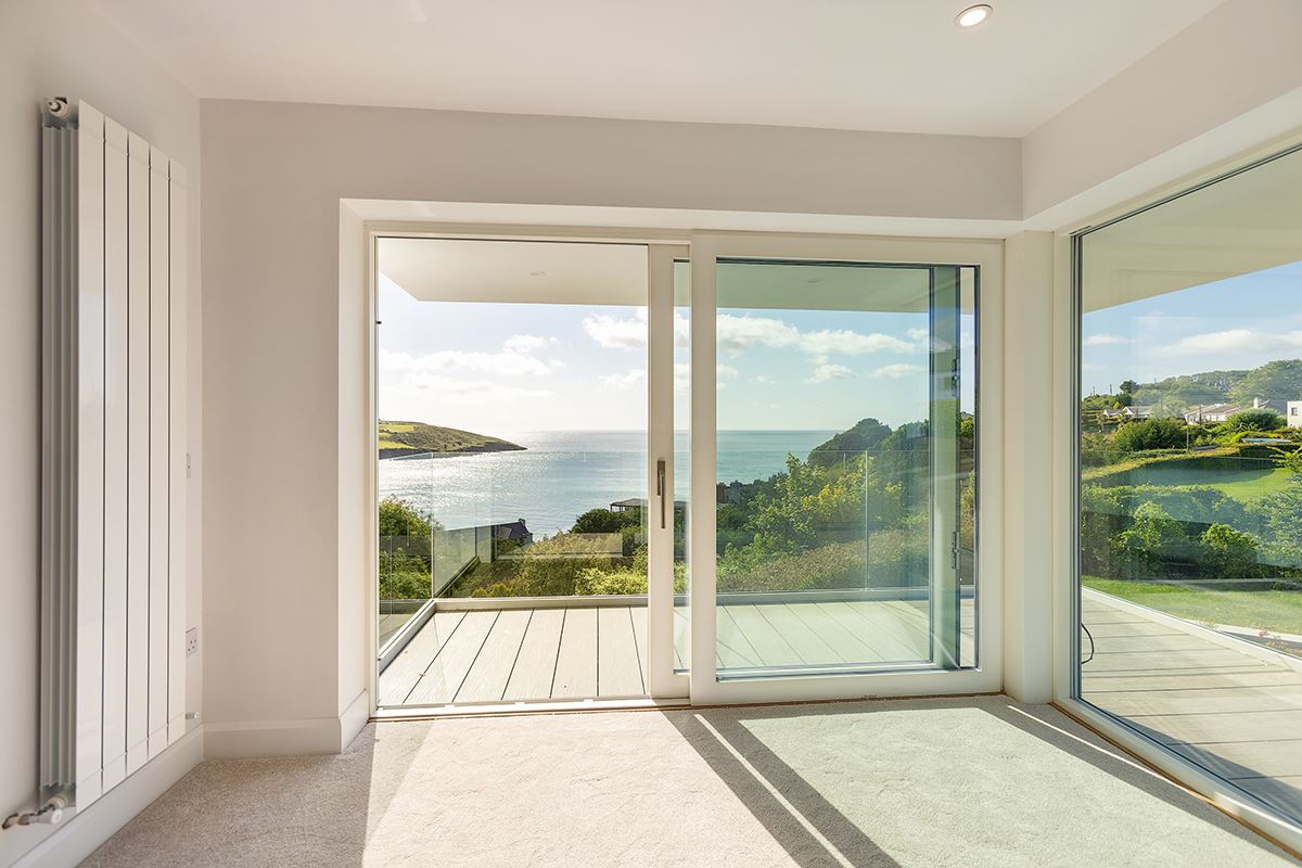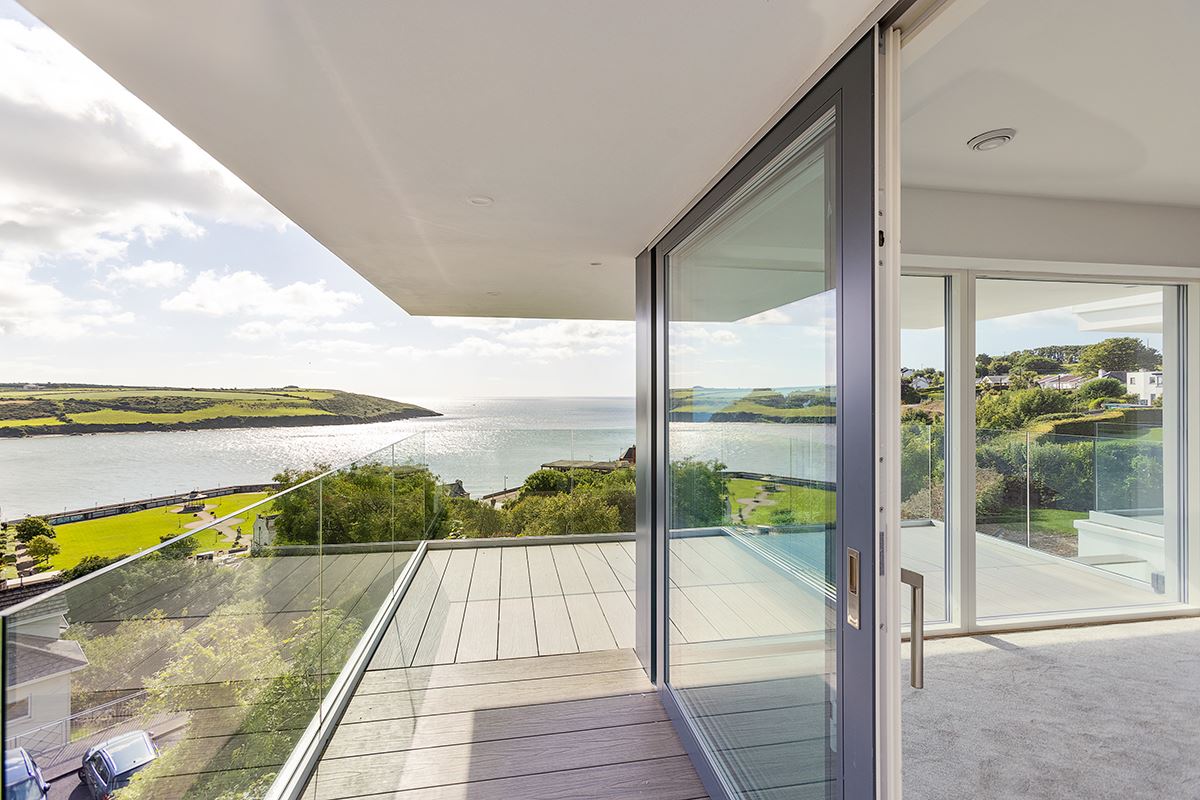 The upstairs living room also enjoys access to a generous balcony, providing a breathtaking vantage point from which to experience the full beauty of the setting — from golden sunrises to the peaceful serenity of midnight skies, all from the comfort of your own home. From these elevated outdoor spaces, panoramic views across Youghal Bay stretch endlessly, creating the perfect setting to enjoy a morning coffee while watching the sea and sky unfold.