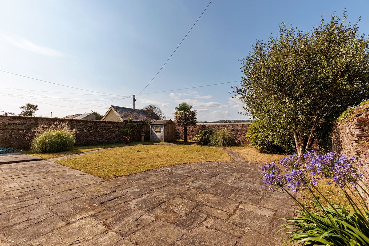 Outside, the property boasts a mature rear garden, accessible via a charming side entrance with archway. A garden shed provides additional storage.