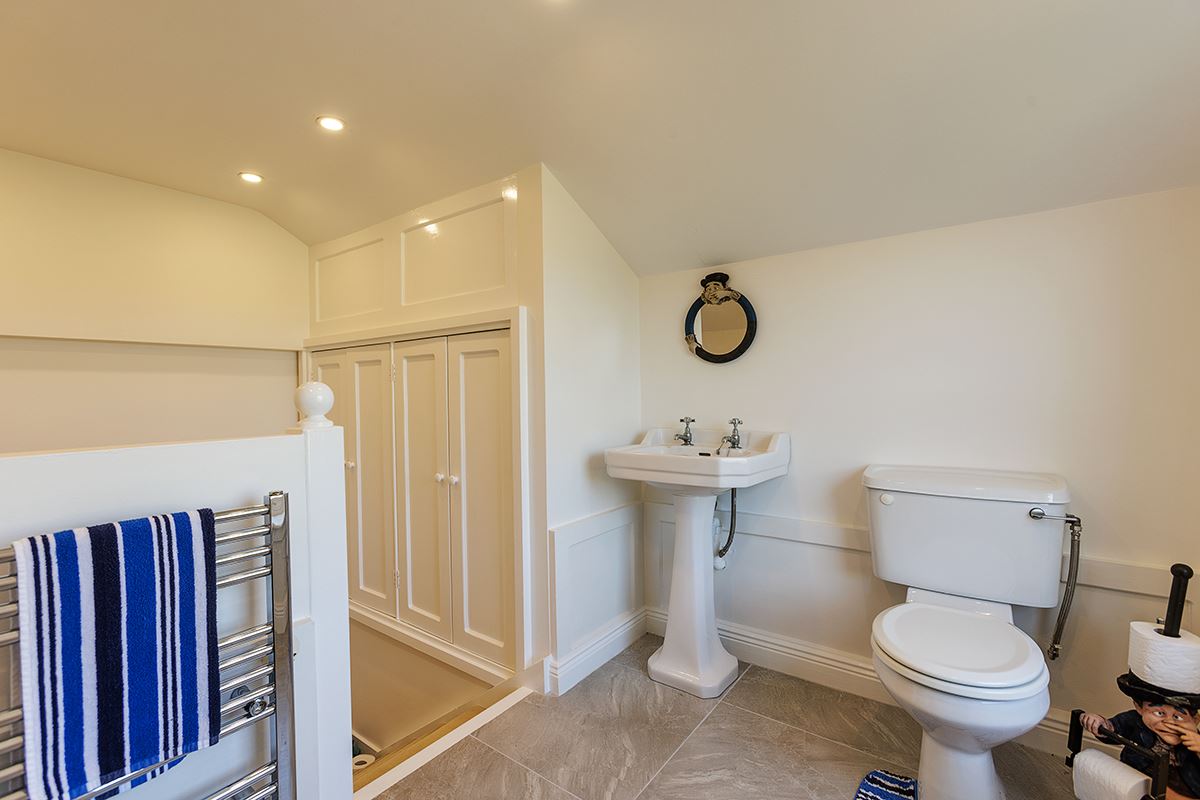 On the landing, you will find two generously sized double bedrooms, each with its own ensuite, along with a well-appointed guest bathroom.