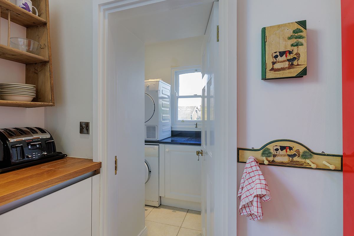 On the lower level, at the heart of the home, a modern kitchen is paired with a separate breakfast room, ideal for everyday family living. From here, steps lead down to the all-important cellar. A utility room and WC complete the lower ground floor.