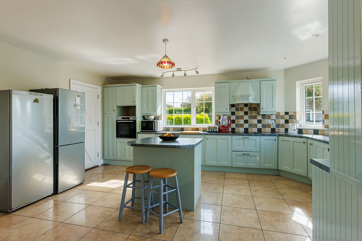 Beyond the house itself, the property includes a garage and two outbuildings, one of which was previously used as a cookery school – offering excellent potential for catering, accommodation or creative use. The grounds are ideally suited to a small kitchen garden, making the most of the private setting. A bio-cycle septic tank, private water supply with softening unit, and modern energy efficiency (BER C2, BER No. 118746833) ensure practical comfort alongside style.