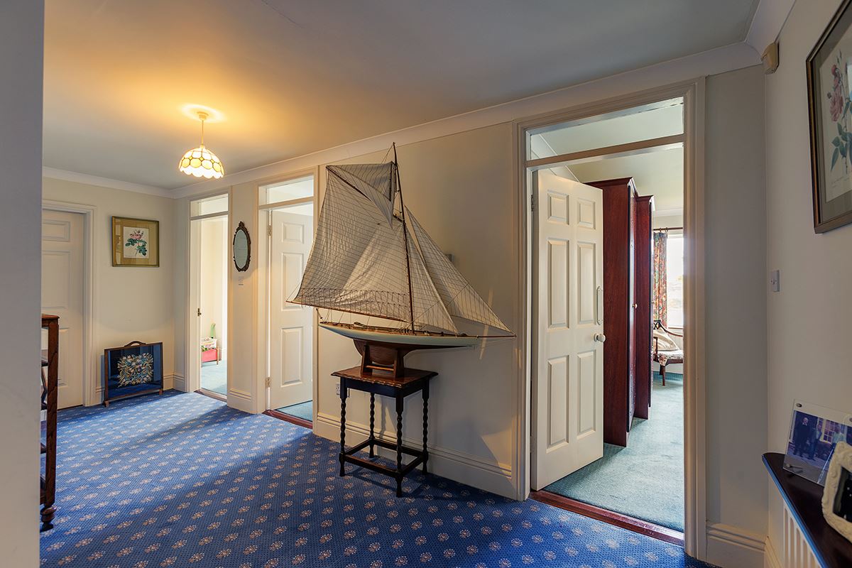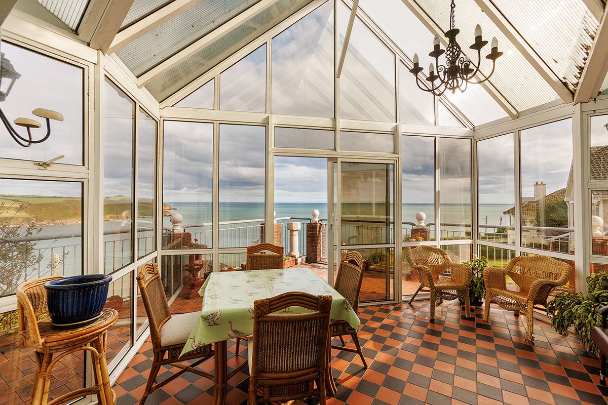 The property comprises of an inviting reception entrance setting the tone for the rest of the home. At the heart of the home is the kitchen with adjoining pantry and utility, making it ideal for day-to-day family living. The spacious living room boasts an open fireplace while the dining area with large bay window frames the stunning views and allows natural light to flood the space. The adjoining conservatory room offers breathtaking sea views and leads outside to an elevated balcony; the perfect space for alfresco dining or to enjoy your morning coffee. A bedroom ensuite and WC complete this floor.
